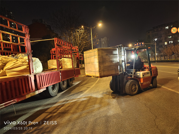 3月28日上午,銅陵金鐘物資按合同給安徽六國化工公司運送部分耐火材料,考慮到企業(yè)推遲了檢修日期,可能在清明節(jié)前后才能用上該批材料,當即從企業(yè)找來防水雨布,將地面鋪墊一層,上面整體包裹起來,嚴嚴實實,送貨人員累得全身是汗。甲方收貨人員十分感動,連聲稱贊金鐘物資管理嚴格、服務周到。而后等到晚上大貨車才能進城卸貨,整件的各種規(guī)格耐火磚、耐火泥等等。