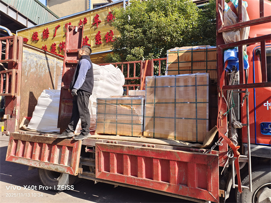 11月13日上午,銅陵金鐘物資按照合同時間給省內一冶金企業運送急需的耐火材料——高鋁標準磚和高鋁異形磚。貨一到就直接送到車間使用,保證了生產的順利進行。